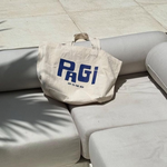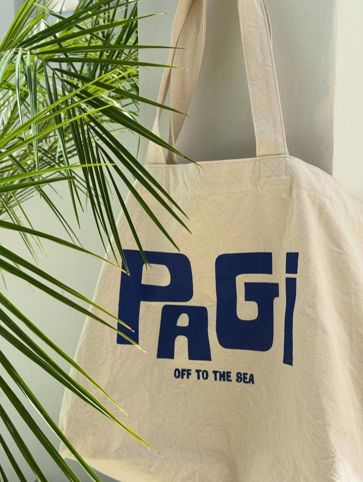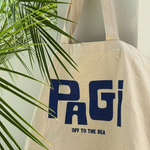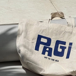 Crafted from 100% durable cotton canvas, this oversized tote fits everything you need for a beach day, market stroll, or carry-on adventure. Featuring bold PAGI — Off to the Sea artwork in ocean blue, it’s your reminder that every day is a new beginning.